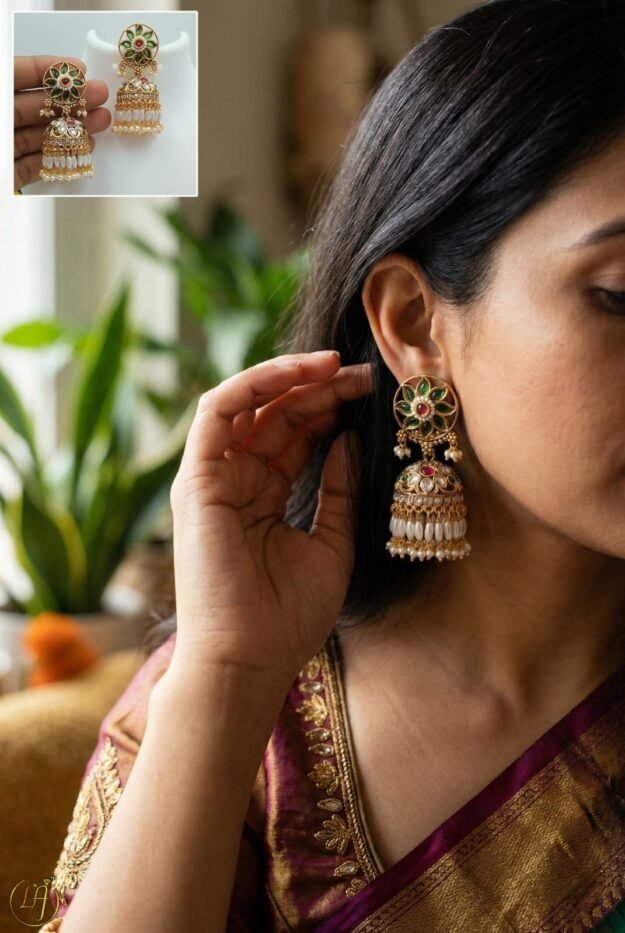 - Styling & Occasion: These Jhumkas are perfect for adding a touch of heritage charm to your wardrobe. They pair exceptionally well with: